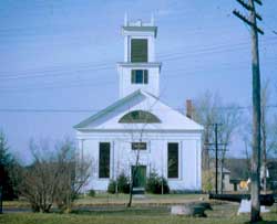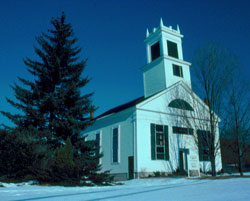 In 1811 the Baptist Society was organized and the North Meeting House was purchased from the Presbyterians. Interest in having a more convenient house of worship began about 1839. The North Meeting House had no bell or belfry, was unpainted, and had no heat. Two lengthy services of almost two hours each were held each Sunday.