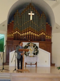 In the past few weeks the newly refurbished sanctuary has come to life. The platform is complete, the new pew chairs are in place, the ceiling and walls have a fresh coat of paint and the sound system is up and running. When the sanctuary was re-dedicated in 1888 the new organ became the center piece of the sanctuary. During the morning service on December 16 the sanctuary was re-dedicated. The 130-year-old Woodbury and Harris organ donated to the church by Dr. David O. Smith in 1888 remains the center piece of the sanctuary.